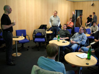 Insgesamt 14 Personen fanden sich gestern Abend für das erste Treffen der User Group in den Räumen der Comma Soft AG ein. Wie angekündigt lag der Schwerpunkt beim Kennenlernen, jeder Teilnehmer stellte sich in einer kurzen Präsentation vor. Danach wurden erste Vorschläge für Vorträge bei den nächsten Treffen gesammelt (dazu in den nächsten Tagen mehr) und auch gleich der nächste Termin festgelegt:
